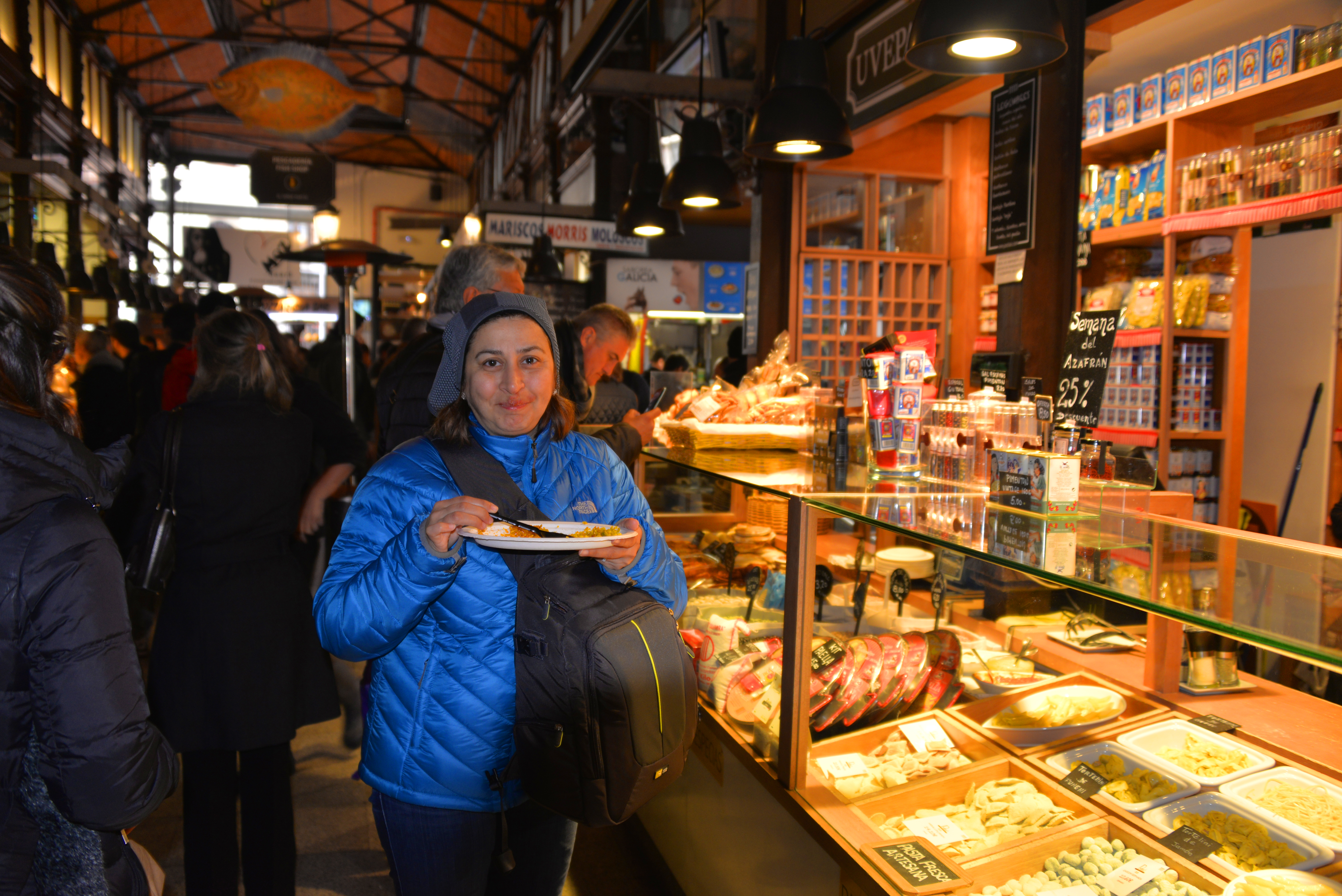 Rehber bize panaromik bir şehir turu yaptırdı ve sırayla Kraliyet Sarayı, İspanya Meydanı, Cervantes Anıtı, La Puerto Del Sol Alanı, Alcala Kapısı, Cibeles Meydanı ve Çeşmesi, Paseo Del Prado ve Apollo Çeşmesi, Retiro Parkı, Gran Via ve Castellena Caddeleri’ni gördük. Plaza Mayor’ da yaklaşık 1 saat mola verdi ve meyve sebze ile her türlü yemeğin satıldığı pazar yerinden deniz ürünlü paella yedik. Saat 17.00 gibi otelimize yerleşmek üzere yola çıktık. Otelimiz Madrid’in biraz dışında idi. Şehir dışında ama küçük bir kasabada, kendi semt pazarı, bar, kafe, restaurantları olan epeyce vakit geçirebileceğimiz bir meydanı var. Otele yerleştikten sonra akşam çevre turuna çıktık, semt pazarlarını gezdik, alışveriş yaptık, sonra geç saatte otelimize döndük.